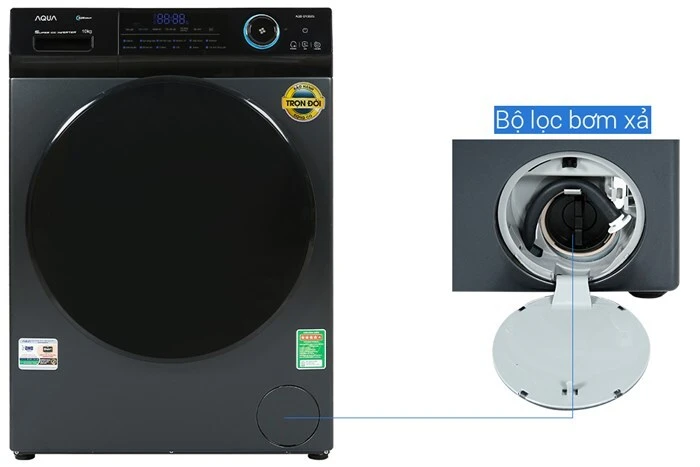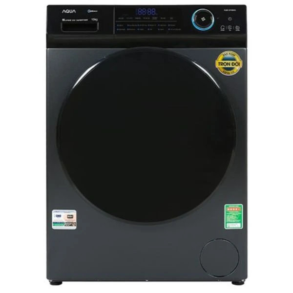 Máy giặt Aqua Inverter 10 kg AQD-D1002G BK sở hữu thiết kế lồng ngang hiện đại, tích hợp nhiều công nghệ giặt tiên tiến như giặt hơi nước, giúp diệt khuẩn và ngăn ngừa dị ứng, phù hợp với các gia đình có từ 5 - 7 người.
